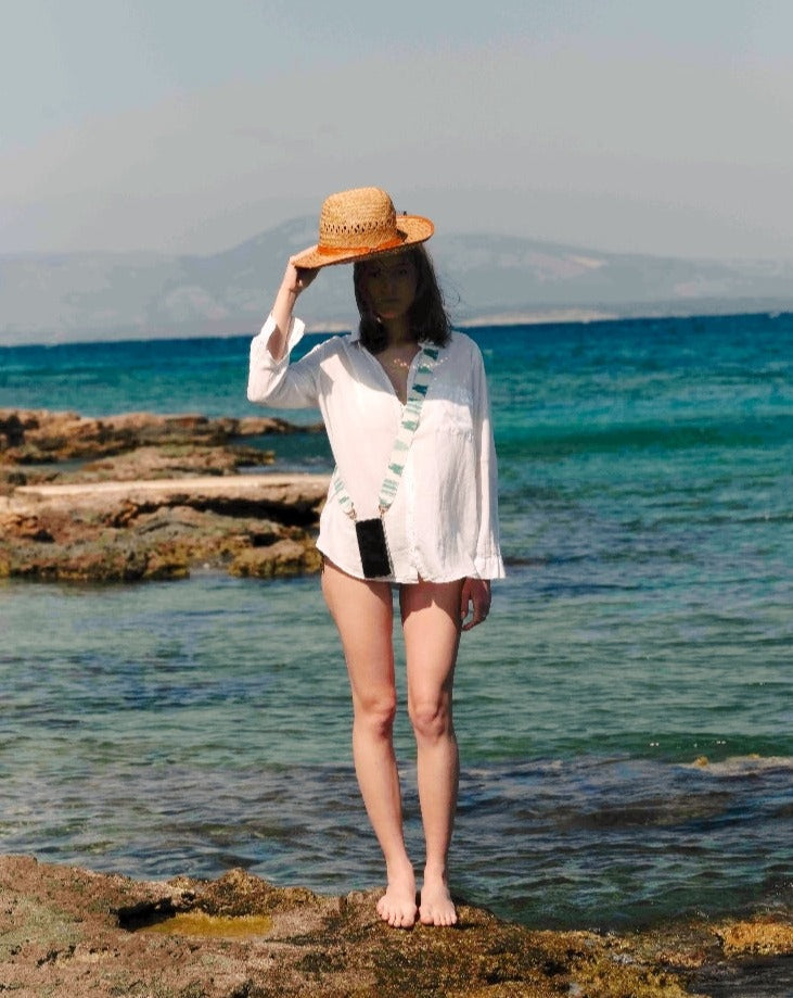 Presentamos nuestras correas para teléfono de Mallorca en color turquesa, confeccionadas con el auténtico tejido mallorquín conocido como 'Roba de llengües'. Este tejido cuenta con una técnica de ikat, que viajó desde Oriente hasta el Mediterráneo a través de la Ruta de la Seda, llegando finalmente a Mallorca. El antiguo ikat mallorquín es un tejido muy fuerte y robusto, un testimonio de esta tradición atemporal, elaborado en Mallorca. Cada correa presenta motivos geométricos intrincados que reflejan el legado cultural de la isla. Hecha a mano con un cuidado meticuloso, la correa para teléfono de Mallorca lleva la esencia de los paisajes bañados por el sol, las aguas azules y la atmósfera animada de la isla a tu vida cotidiana, asegurando que tu teléfono esté siempre seguro.