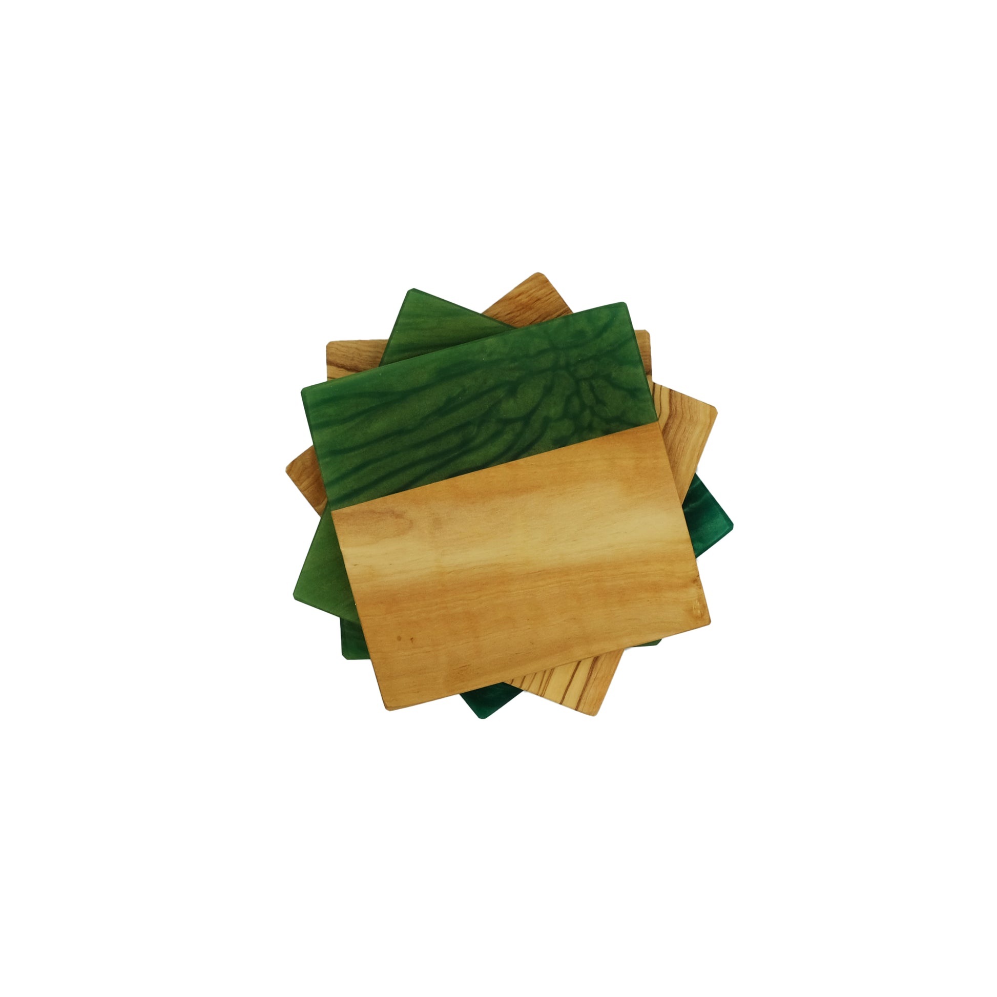 YAYA Olive Wood Coasters with Green Resin