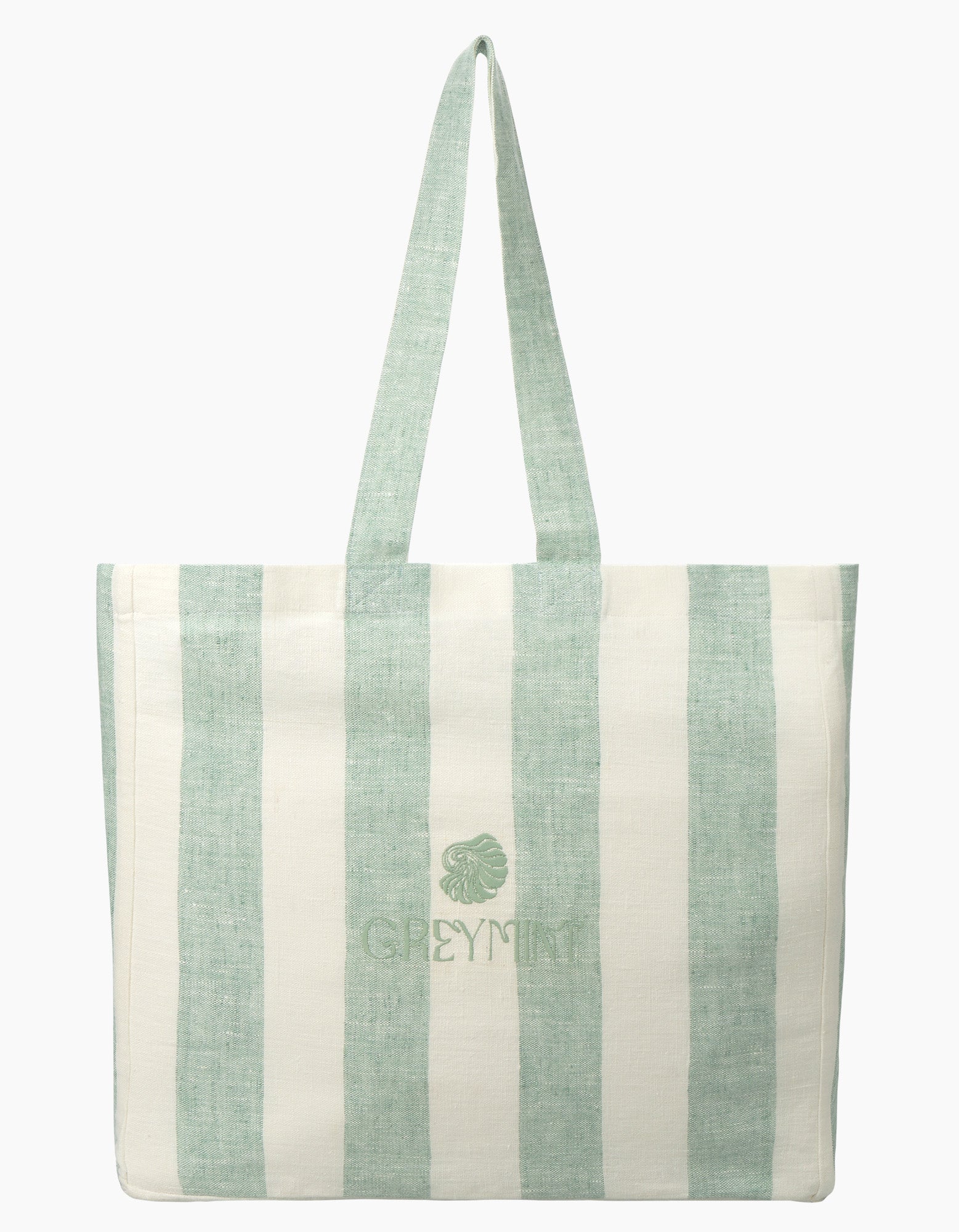 Inspired by the vibrant spirit of Mediterranean markets and sunlit coastal retreats, our GREYMINT Green Striped Tote Bag embodies the effortless elegance and laid-back charm of the region. Crafted with care, this tote is made from premium, sustainably-sourced linen, bringing you a piece that is both stylish and kind to the earth.