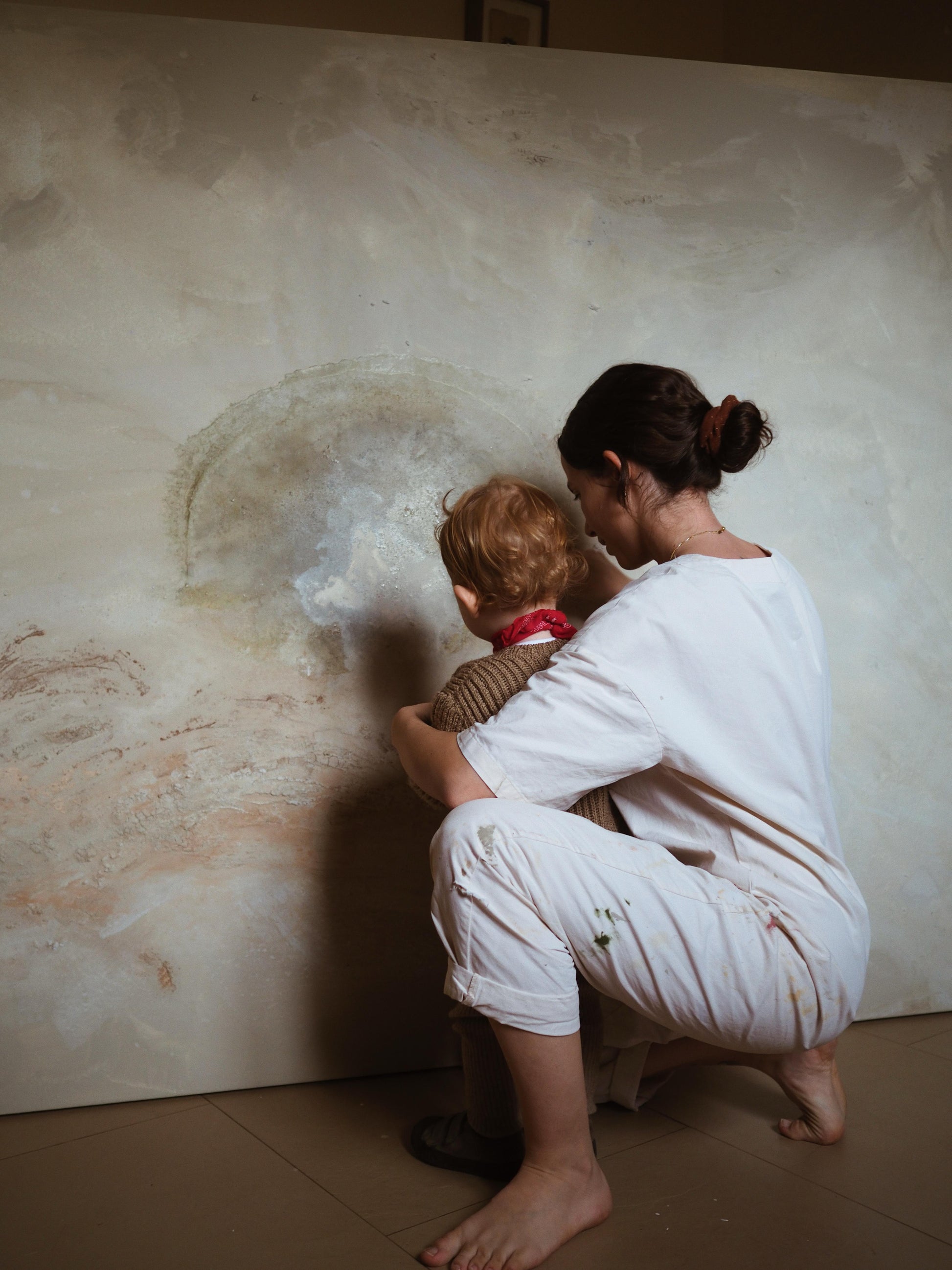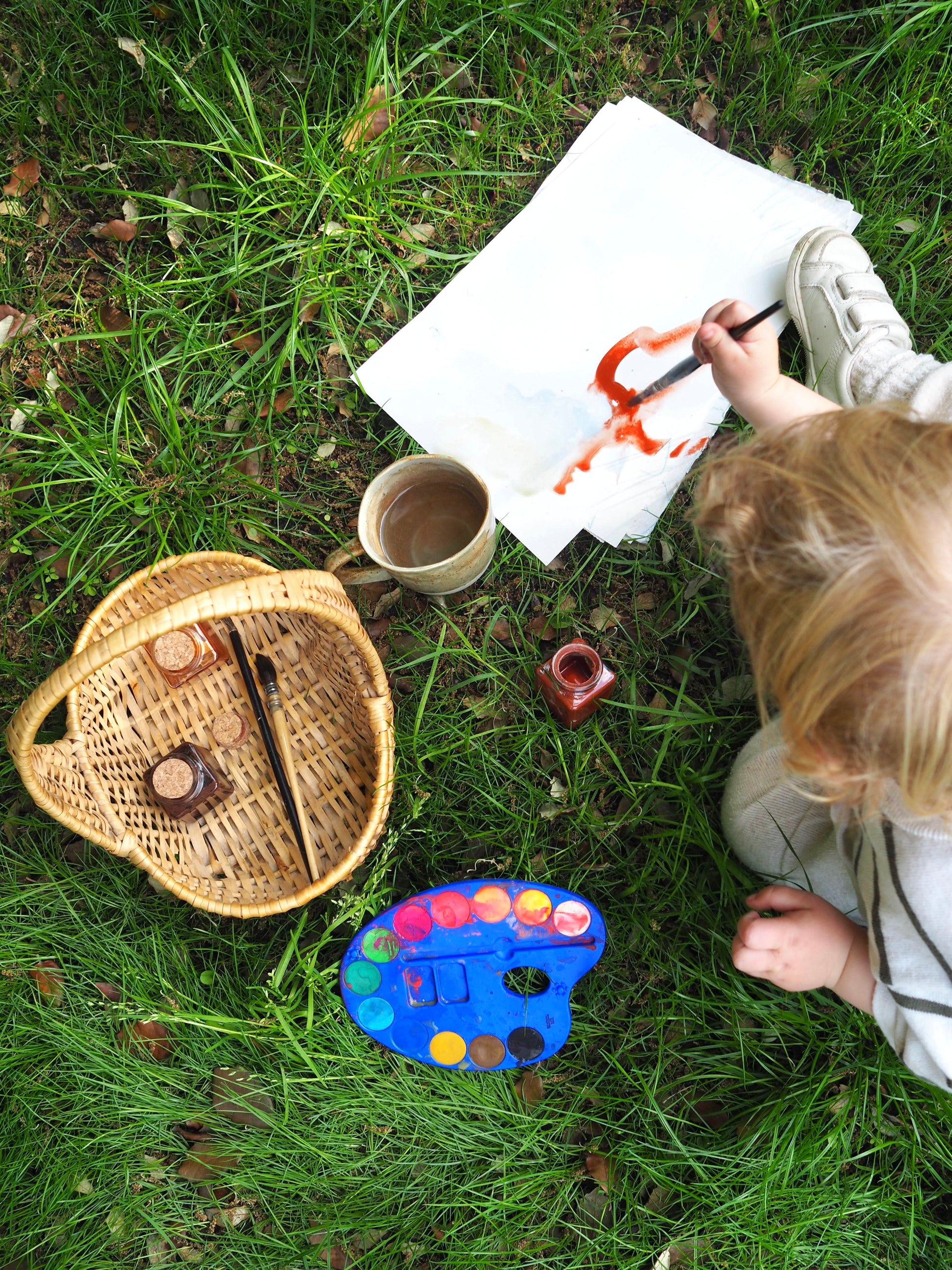 The workshop begins, focusing on natural materials and creative painting. Lasts for up to 2.5 hours, with flexible participation for the children.