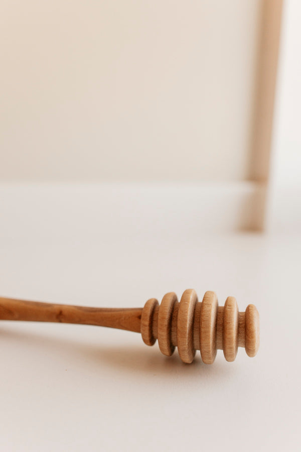 Our YAYA Olive Wood Honey Drizzler, a piece that elevates your honey-drizzling experience with its premium handmade, real olive wood craftsmanship.  Crafted by skilled artisans to the highest standards, the YAYA Olive Wood Honey Drizzler boasts stunning grain patterns and colours inherent to olive wood. Ethically and sustainably sourced, the drizzler is made with care, ensuring a connection to the natural beauty of olive tree varieties.