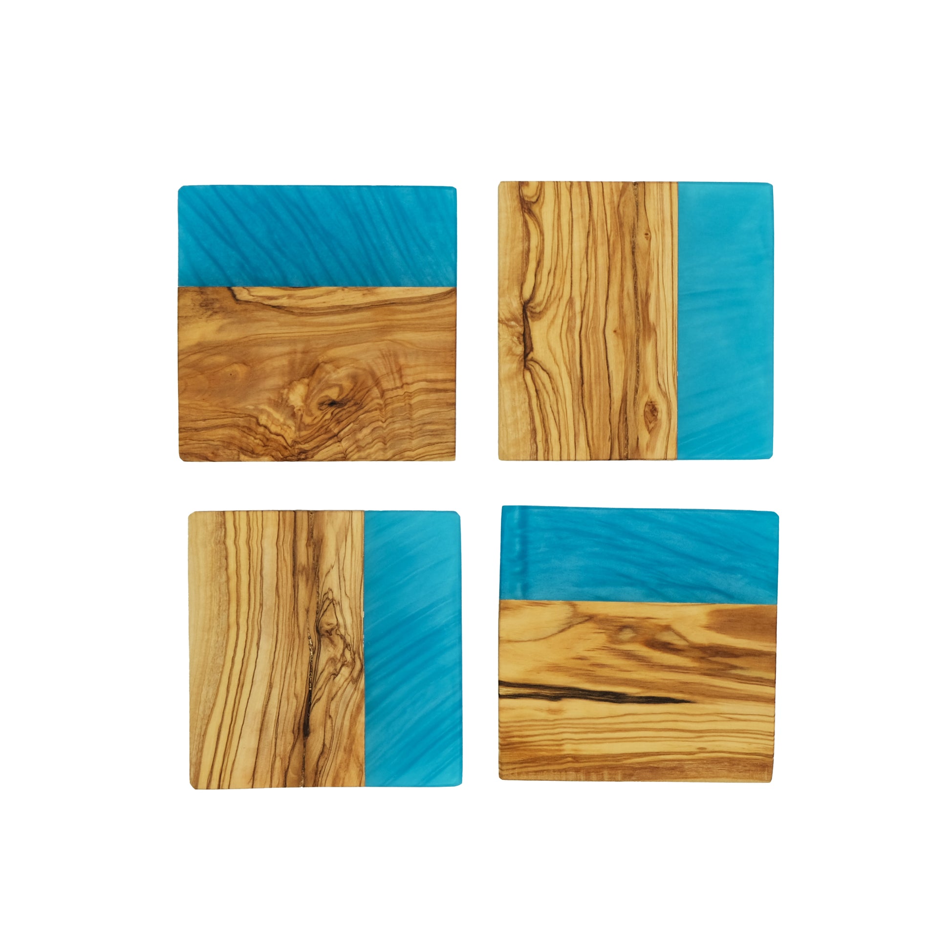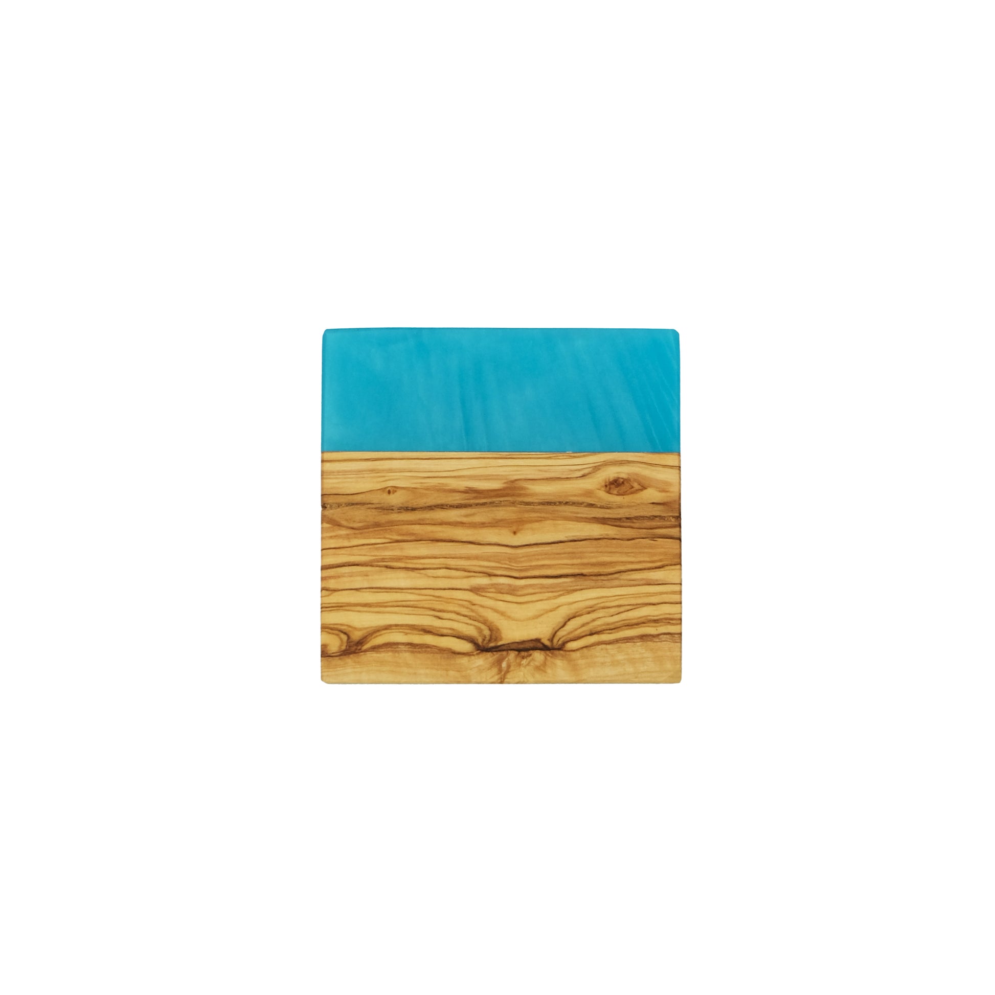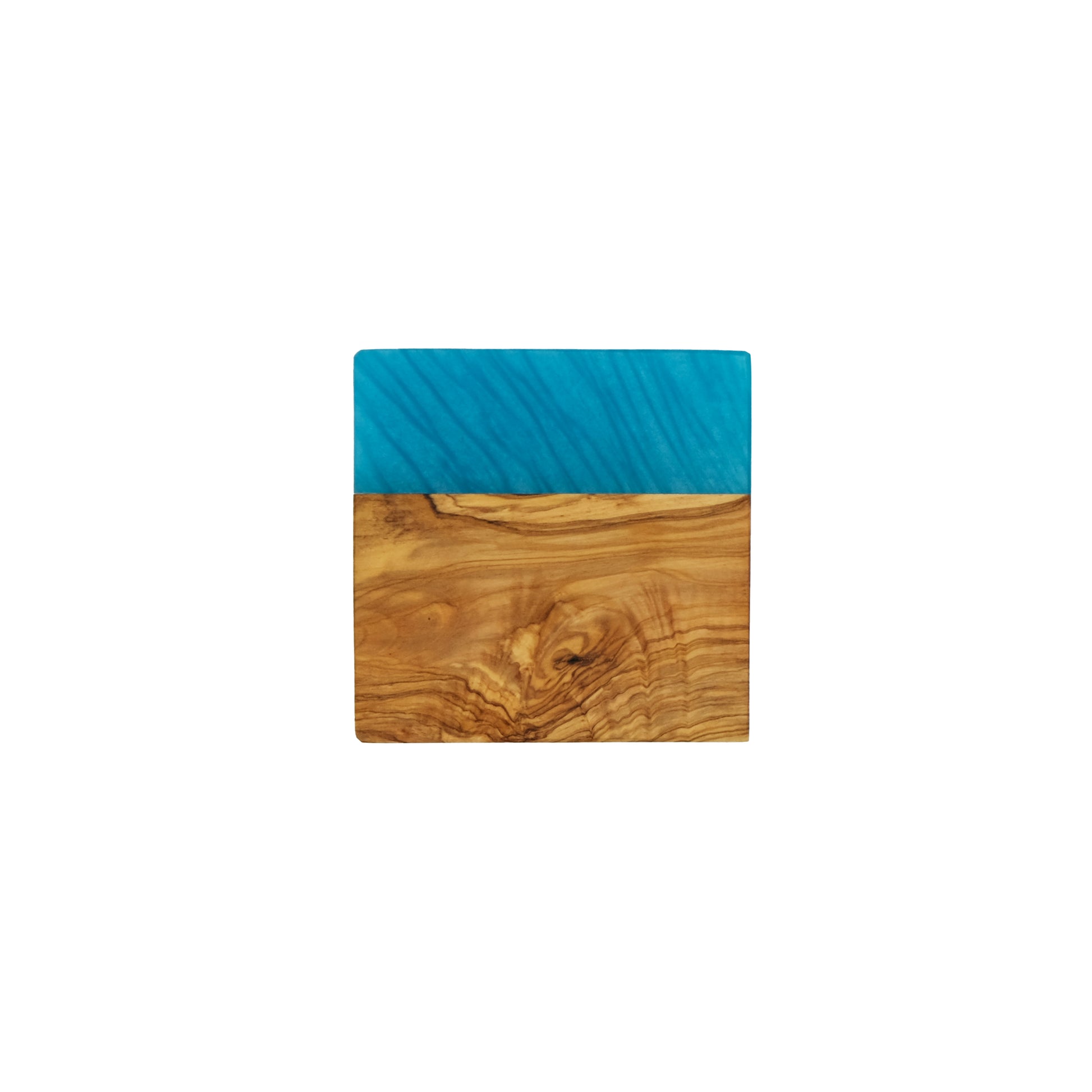 Introducing the YAYA Olive Wood Coasters with Blue Resin, a refined creation that seamlessly blends the organic warmth of olive wood with the soft elegance of a blue resin accent.
